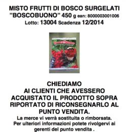 | 2013.880 | Presenza virus HVA | Misto bosco surgelato “Bosco buono” g 300 | Green Ice Spa | 13079 | TMC 02/2015 | SI |