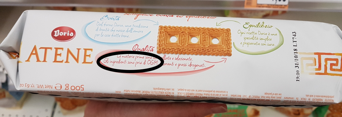 Vorrei ricevere delucidazioni in merito alla questione della scritta “OGM free” o “senza OGM” che leggo spesso su diversi prodotti. Al supermercato ho trovato alcune aziende produttrici di biscotti tipo frollini che inseriscono tra i loro claim anche OGM free (vedi fotografie). È corretto inserire questa scritta, dal momento che gli OGM, se eventualmente presenti, devono essere dichiarati in etichetta? In questo modo le aziende che inseriscono il suddetto claim sulle loro confezioni, effettuano concorrenza sleale/ingannevole nei confronti di altre aziende similari, non avendo i loro prodotti nulla più degli altri? Infine vorrei sapere perché è stata fatta la proposta al Parlamento europeo di vietare la scritta “senza olio di palma”. Graziana