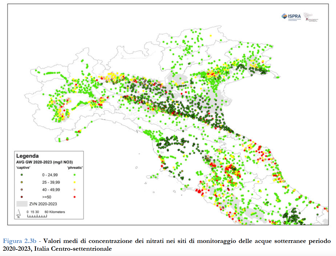 In Italia, il tema dell’inquinamento da nitrati legato alla zootecnia intensiva è da tempo oggetto di attenzione da parte di ARPA e ISPRA. La Relazione ISPRA-Sintai per il quadriennio 2020-2023 (la più recente) conferma che molte falde acquifere nelle regioni del Nord – in particolare Lombardia, Emilia-Romagna e Veneto – mostrano concentrazioni di nitrati superiori ai limiti di legge (50 mg/l), soprattutto in zone con alta densità di allevamenti suinicoli e avicoli. In alcune aree della provincia di Brescia, ad esempio, si registrano superamenti sistematici in oltre il 30% dei punti di monitoraggio.