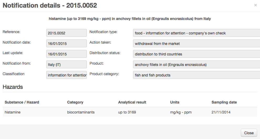Grazie a questo monitoraggio, approfondito e continuativo, è emersa la non conformità per il parametro istamina nel lotto 14132 con scadenza 11/2015, che ha fatto scattare le nostre procedure di ritiro dalla vendita e la comunicazione all’Asl di competenza per l’attivazione dell’allerta sanitaria. Gli altri 2 lotti non conformi sono stati da noi ritirati dalla vendita in ottemperanza a quanto richiesto dagli enti di controllo preposti a seguito di loro prelievi ufficiali. Sin dal primo ritiro, abbiamo attivato tutti i nostri canali per informare i nostri clienti, utilizzando non solo i cartelli posizionati nei punti vendita, previsti dalla normativa, ma anche il nostro sito istituzionale.