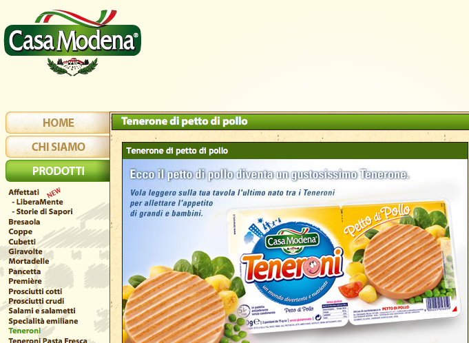 Grandi Salumifici italiani ha richiamato dagli scaffali i “Teneroni di petto di pollo” di Casa Modena in confezioni da 150 g. Il ritiro ha coinvolto oltre 600 supermercati situati in quasi tutte le regioni italiane (Auchan, Cedi Gross, Fiordaliso, Iper, Italbrix, Conad, Coop, Maxi Di, Pam Panorama…).