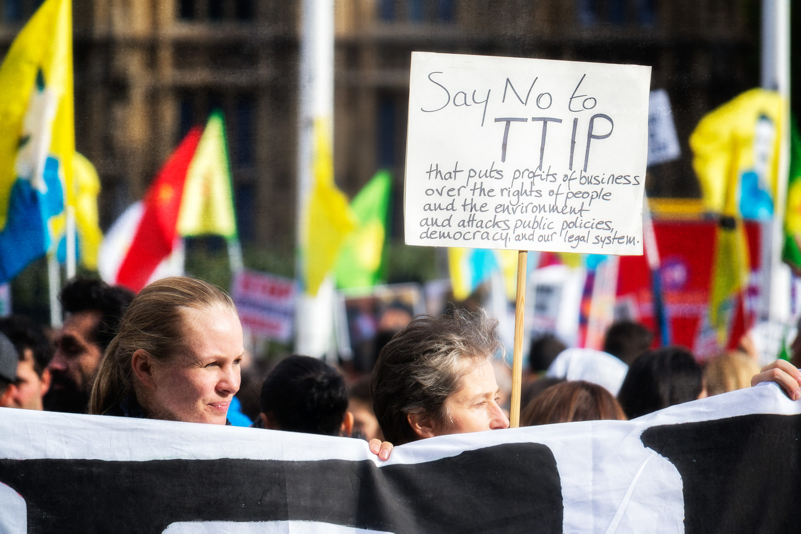 Il 7 maggio, a Roma, si terrà una manifestazione nazionale contro il TTIP (Transatlantic Trade and Investment Partnership), il Trattato di libero scambio tra Ue e Usa, i cui negoziati sono in corso dal luglio 2013. La manifestazione è promossa dal Campagna Stop TTIP Italia e si terrà a due settimane di distanza dal recente vertice dei G5, che ha visto il presidente Usa, Barack Obama, fare pressing sui leader europei per arrivare alla firma entro la fine dell’anno, prima della conclusione del suo secondo mandato. Da parte italiana, la reazione è stata tiepida: «Siamo favorevoli al trattato e spingiamo perché si concluda nel rispetto di alcune specificità», ha detto il presidente del Consiglio, Matteo Renzi. Da parte francese, invece, la reazione è stata più netta, con il premier Manuel Valls che si è dichiarato «preoccupato dalla piega presa dalle trattative – e aggiunge: – non possiamo accettare negoziati che mettano in discussione i nostri servizi pubblici, un certo numero di nostri prodotti, la nostra agricoltura, la nostra cultura».