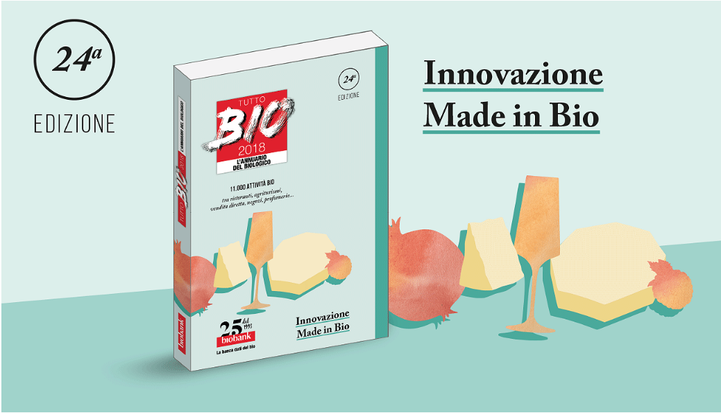 Anche quest’anno è uscito l’annuario “Tutto bio 2018”, come sempre a cura di Rosa Maria Bertino, Achille e Emanuele Mingozzi edito da Bio Bank, giunto alla sua 24esima edizione. Questa volta il tema intorno a cui ruota il volume è l’“Innovazione Made in Bio”. Nel testo si focalizza l’attenzione sull’innovazione intesa come motore propulsivo del settore biologico (alimentare e non) e sul made in Italy come caratteristica correlata sempre più al made in Bio. Attorno a questo argomento si dipana il racconto di 10 storie di imprese bio e la descrizione della ricerca che si nasconde dietro ai prodotti più innovativi del settore.