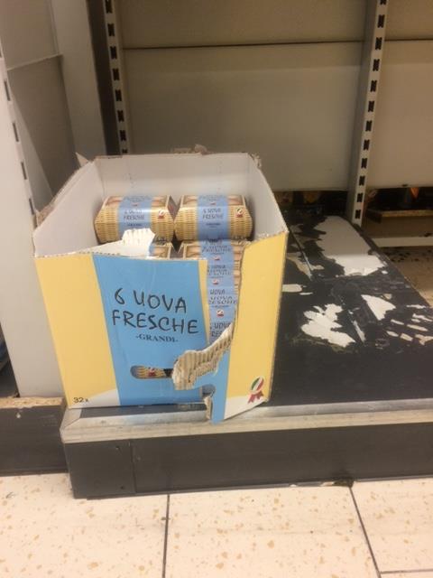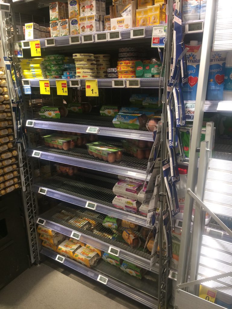 Sopra il punto vendita Lidl di via Saccardo a Milano, alle 19:00 del 27 ottobre, le uova sono pressoché finite.