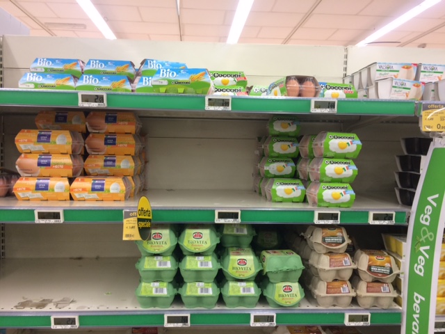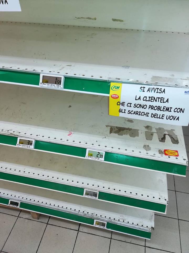 In redazione sono arrivate diverse segnalazioni dal Piemonte alla Liguria, da parte di lettori stupiti nel constatare gli scaffali vuoti. Abbiamo chiesto i motivi di questa crisi alle catene dei supermercati, che hanno preferito glissare. Solo Coop ha ammesso problemi di approvvigionamento a causa del fipronil e dell’influenza aviaria.