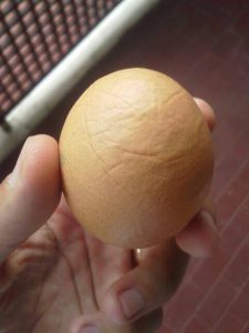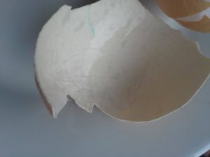 È verissimo che ogni uovo è un prodotto a se. Non a caso mi son capitate uova a due tuorli però sta storia del guscio mai capitata nelle uova di mio padre.