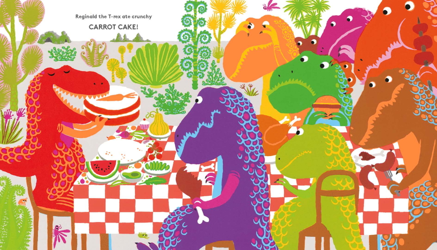 Dedicato ai bambini alle prese con i primi approcci con la lettura e a quelli che non sanno leggere e che si affidano ai genitori, la storia narra di un T-rex – Reginaldo del tutto simile agli altri che ruggisce, corre e hai denti aguzzi. Il protagonista della storia si sente escluso dalla famiglia e dagli amici perché invece di divorare carne e bistecche ama solo frutta e verdura. Sentendosi incompreso decide di andarsene di casa. Il libro si conclude nel migliore dei modi possibile: la famiglia capisce che Reginaldo è forte e in gamba proprio come gli altri tirannosauri e che non ha senso deriderlo per ciò che mangia.