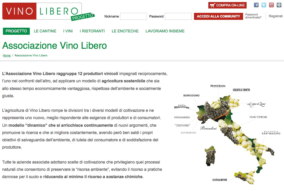 «I vigneti di vino “libero” saranno anche liberi da fertilizzanti e diserbanti», spiega Paolo Carnemolla, presidente di FederBio, «ma non lo sono da insetticidi e antricrittogamici. I solfiti saranno anche il 40% in meno di quanto consentito dalla normativa generale, ma per gli altri coadiuvanti e processi c’è – appunto – libertà. Tenuta Fontanafredda ha anche annunciato il progetto “Riserva bio” in cui il termine “bio” è associato soltanto alla “CO2 neutral” (a emissioni zero di CO2), mentre per il resto rimane una normale grande azienda, basata sull’agricoltura integrata, non certo un’azienda biologica».