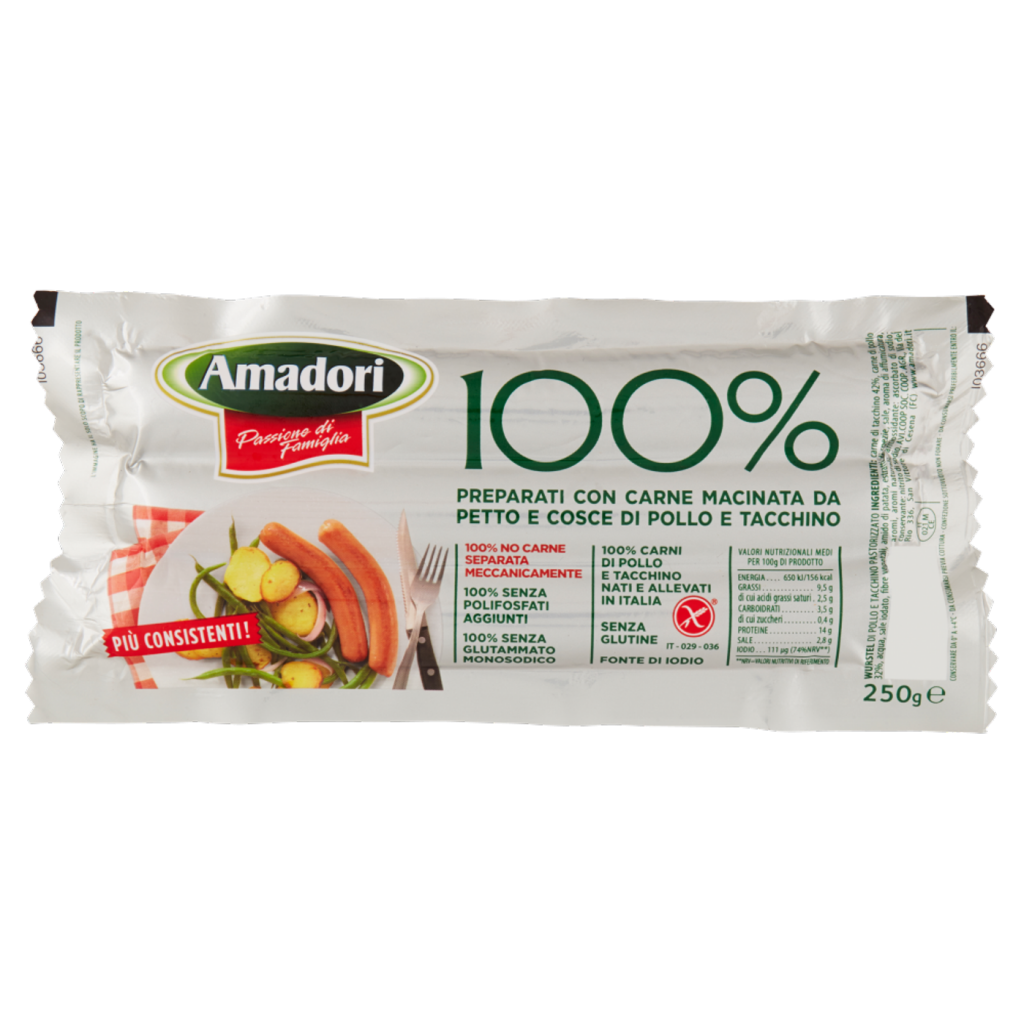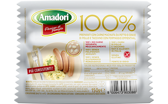 Il Fatto Alimentare si è già occupato in passato della questione CSM, quando la quasi totalità dei würstel esposti sugli scaffali dei punti vendita era preparato con questo ingrediente. Negli ultimi tempi qualcosa è cambiato e nei banchi frigorifero della grande distribuzione si trovano würstel, salsicce e piatti pronti da cuocere preparati con vera carne di pollo e tacchino. L’ultima arrivata è Amadori, che ha lanciato in grande stile un’intera nuova linea di würstel di pollo, tacchino e suino preparati senza carne separata meccanicamente. Nella nuova gamma, chiamata “100%”, la CSM è stata sostituita con macinato di petto e coscia di pollo e tacchino nati e allevati in Italia. I nuovi würstel sono anche privi di glutammato monosodico, sostituito con sale iodato, non hanno polifosfati e sostanze addensanti in grado di trattenere acqua, e sono senza glutine.