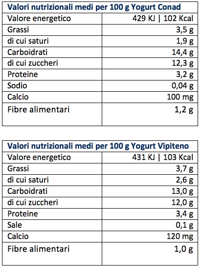 Nel caso dello yogurt alla frutta, in genere il vasetto con la marca del supermercato costa il 20% in meno rispetto al prezzo medio (e ancora di meno rispetto alle marche leader). In questo caso però è diverso perché lo yogurt Vipiteno e Conad hanno prezzi allineati: rispettivamente 3,36 e 3,4 €/kg.