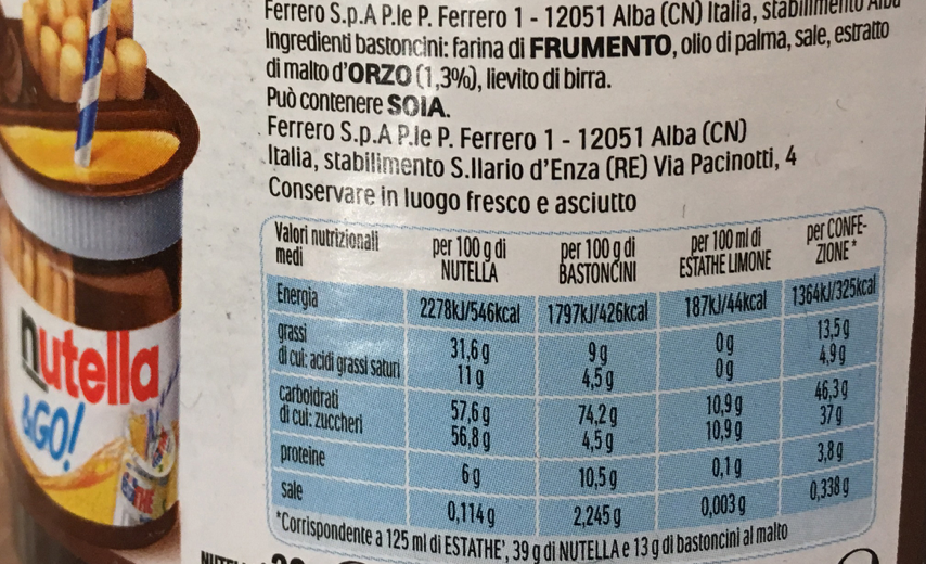 Purtroppo gran parte degli alimenti considerati più gustosi sono dolci e anche ricchi di grassi, soprattutto se consideriamo quelli industriali. Barrette, biscotti, bibite e merendine possono contenere grandi quantità di zucchero. 100g di cioccolato al latte hanno circa 50 g di zucchero, una crostatina Esselunga alla marmellata da 42g ne contiene quasi 15. Uno snack “completo” come Nutella&Go! (39g di crema a base di nocciole e 13g di grissini) supera i 22g, che arrivano a 37 se si considera la versione dello snack abbinata a una confezione di Estathé da 125ml .