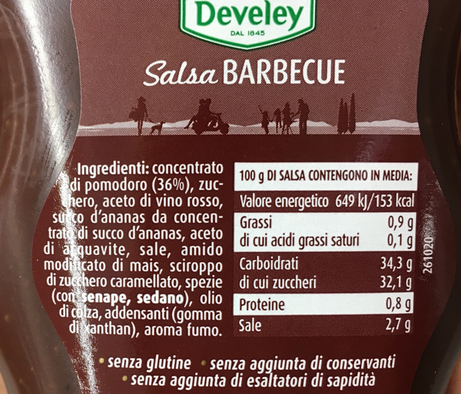 Lo zucchero è anche fra gli ingredienti di creme e minestroni in scatola. Si può trovare nei sughi pronti, negli hamburger vegetariani, e in molte pizze surgelate come la “Margherita Saporita” Cameo che ne contiene 14 g. Anche le ricette di molte salse prevedono la presenza di zuccheri: 21g in 100 ml di ketchup Calvé, mentre 100g di salsa dolce per barbecue Develey ne contengono 32g!